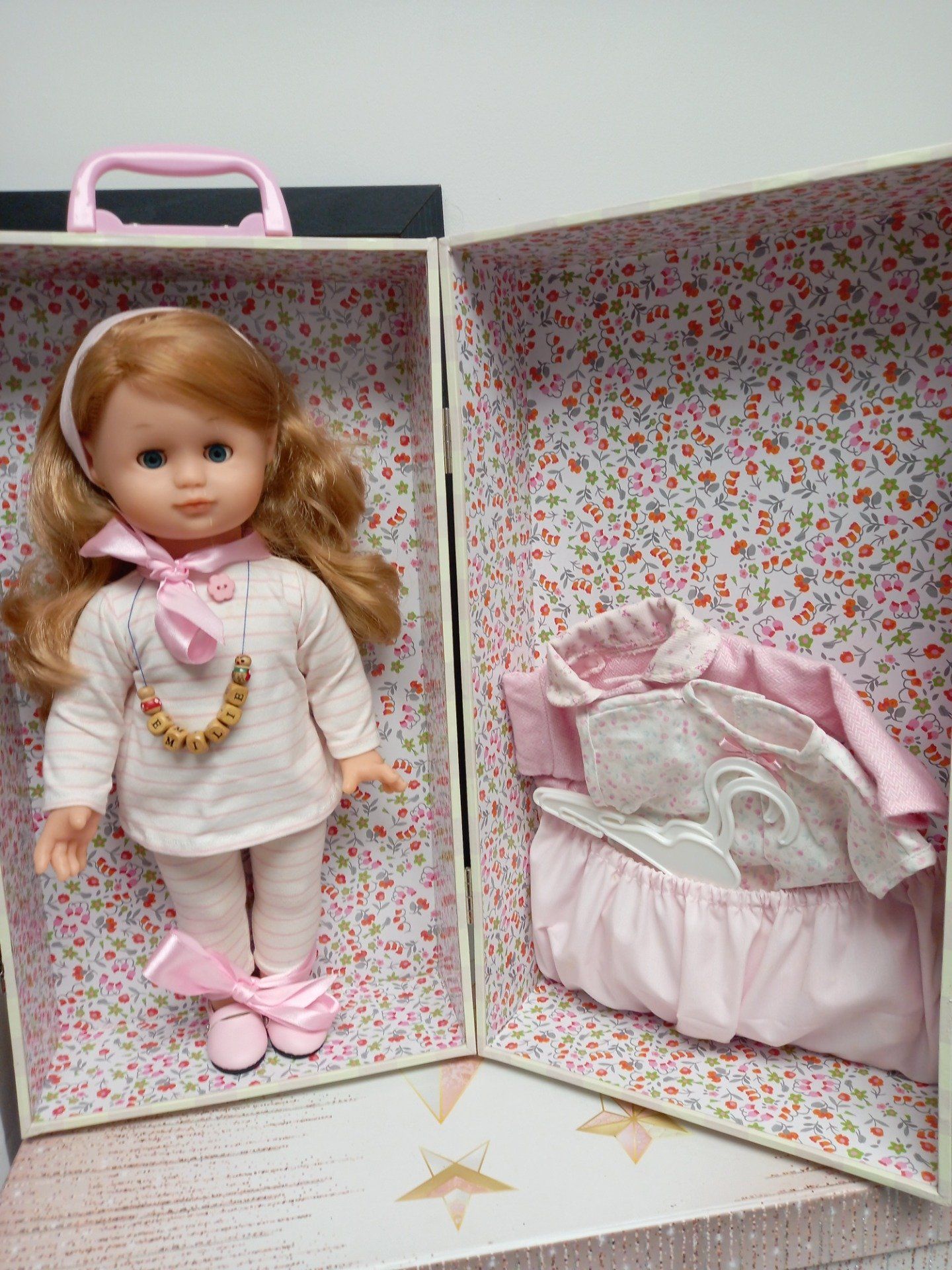 Rare poupee Émilie dans sa malle avec son trousseau jamais jouée complète avec aussi le carton d emballage pour la presentation